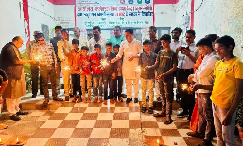 सिंगरौली :-धनतेरस के पावन अवसर पर नव प्रवाह NGO के तत्वावधान में दिव्यांग CWSN छात्रावास में दीपावली मिलन समारोह का आयोजन हर्षोल्लास के साथ किया गया। कार्यक्रम में मुख्य रूप से सिंगरौली विधायक रामनिवास शाह, नगर निगम अध्यक्ष देवेश पाण्डेय, वार्ड पार्षद संतोष शाह, वरिष्ठ समाजसेवी बाबू नंदन, भाजपा किसान मोर्चा नेता वीरेंद्र पाठक, सुरेश गिरी, पत्रकार साथी अरविंद मिश्रा, संतोष द्विवेदी, विवेक कुमार त्रिपाठी, सुग्रीव वर्मा सहित कई गणमान्य नागरिक उपस्थित रहे।