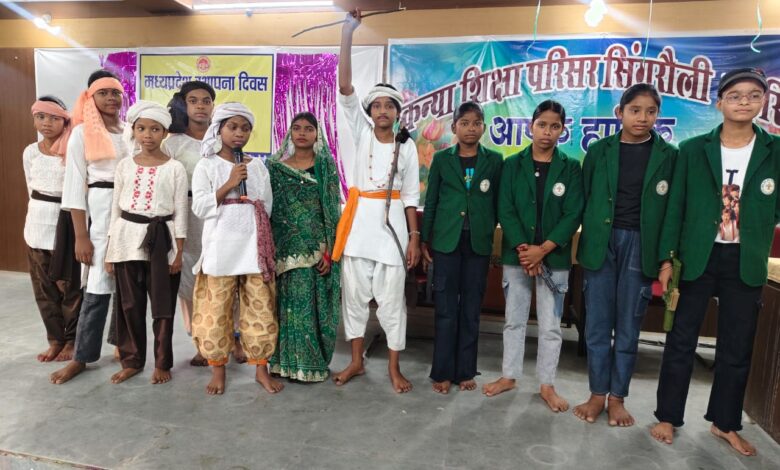 सिंगरौली 08 नवम्बर 2025/ भगवान बिरसा मुंडा की 150वीं जयंती वर्ष के अवसर पर “जनजातीय गौरव वर्ष” के अंतर्गत जिले में विभिन्न कार्यक्रमों की शृंखला का आयोजन किया जा रहा है। इसी तारतम्य में आज माता सबरी आवासीय कन्या शिक्षा परिसर में जनजातीय गौरव दिवस पखवाड़ा अंतर्गत जनजातीय महापुरुष के जीवन चरित्र पर एवं संस्कृति पर लघु नाटक का आयोजन किया गया। प्रस्तुत लघु नाटक जंगल का वीर बेटा एवं भगवान बिरसा मुंडासमाज सुधारक (बाल विवाह) विषय पर आयोजित किया गया। लघु नाटक के माध्यम से विद्यार्थियों में जनजातीय इतिहास, गौरव एवं सामजिक योगदान के प्रति जागरूकता बढ़ाने का उद्देश्य रखा गया।