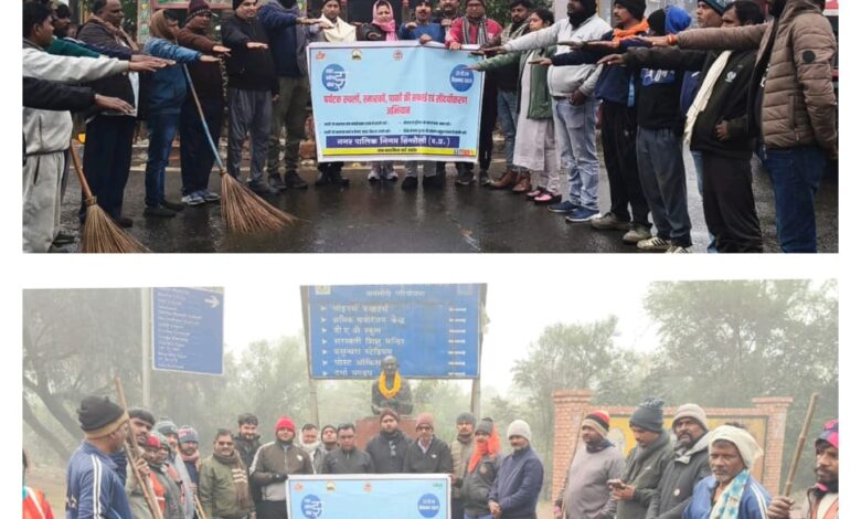 शहर बनेगा नम्बर वन अभियान के तहत महापुरूषो के प्रतिमा की साफ सफाई कर ली गई स्वच्छता की शपथ