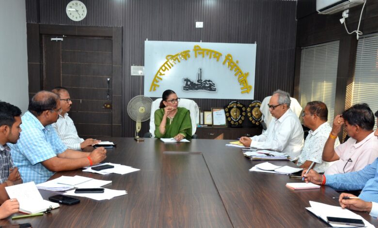 सिंगरौली 6 अप्रैल 2026/नगर निगम सिंगरौली की आयुक्त श्रीमती सविता प्रधान ने निगम के विभिन्न विकास कार्यों एवं योजनाओं की प्रगति की समीक्षा के लिए महत्वपूर्ण बैठक आयोजित की। बैठक में शहर के समग्र विकास, नागरिक सुविधाओं के विस्तार तथा स्वच्छता व्यवस्था को सुदृढ़ बनाने पर विशेष जोर दिया गया।आयुक्त श्रीमती प्रधान ने निर्देश दिए कि जल गंगा अभियान के अंतर्गत सभी कार्यों की निविदाएं आगामी दो दिनों में जारी की जाएं। साथ ही जिन क्षेत्रों में पाइपलाइन के माध्यम से जल आपूर्ति नहीं हो रही है, वहां की सूची तैयार कर वैकल्पिक जल व्यवस्था सुनिश्चित की जाए।गैस पाइपलाइन परियोजना की समीक्षा करते हुए आयुक्त ने संबंधित ठेकेदार से स्पष्ट समयसीमा प्राप्त करने के निर्देश दिए। उन्होंने कहा कि घरों में गैस कनेक्शन उपलब्ध कराने और गैस आपूर्ति शुरू करने की तिथि तय कर शीघ्र कार्य पूर्ण किया जाए स्वच्छता को प्राथमिकता देते हुए आयुक्त ने कलेक्ट्रेट, जिला पंचायत एवं नगर निगम परिसर के शौचालयों को आगामी 15 दिनों में ओडीएफ प्लस-प्लस मानकों के अनुरूप विकसित करने के निर्देश दिए। इसके साथ ही शहर में चलित शौचालयों की पर्याप्त व्यवस्था सुनिश्चित करने और जिला न्यायालय के सामने नए शौचालय निर्माण कराने के भी निर्देश दिए गए। नगरीय क्षेत्र में हरित विकास को बढ़ावा देने के लिए आयुक्त ने प्लांटेशन कार्य हेतु एक सप्ताह के भीतर टेंडर जारी करने के निर्देश दिए। साथ ही प्रधानमंत्री आवास योजना के अंतर्गत प्रथम चरण में 500 आवासों की योजना तैयार कर प्रस्तुत करने को कहा।बैठक में आधुनिक गौशाला निर्माण के लिए डीपीआर तैयार करने, नगर निगम की टो-व्हीकल को ट्रैफिक पुलिस को हस्तांतरित करने तथा ट्रांसपोर्ट नगर की 23 दुकानों के विक्रय हेतु टेंडर प्रक्रिया शीघ्र प्रारंभ करने के निर्देश भी दिए गए। इसके अतिरिक्त जिला न्यायालय परिसर के लिए उपयुक्त पार्किंग स्थल चिन्हित करने के भी निर्देश दिए गए।बैठक के दौरान उपायुक्त आर.पी. बैंस, कार्यपालन यंत्री संतोष पांडे, स्वास्थ्य अधिकारी बालगोविंद चतुर्वेदी सहित सभी सहायक यंत्री एवं उपयंत्री उपस्थित रहे।